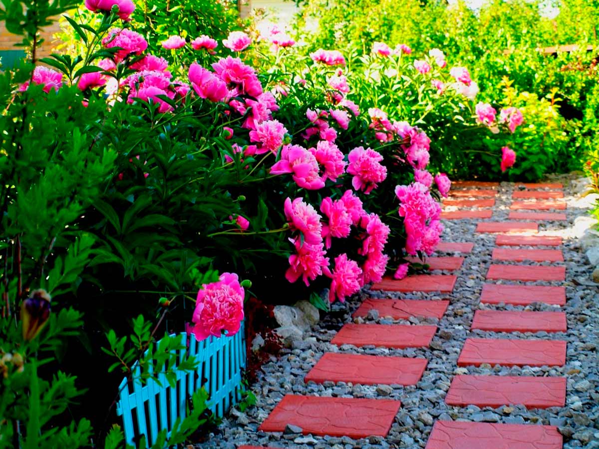 Пионы придают объем и пышность любой клумбе, а после своего цветения являются прекрасным фоном для остальных растений. Присутствие пионов в смешанных композициях можно даже сравнить с вставкой рубинов в ювелирное украшение.
