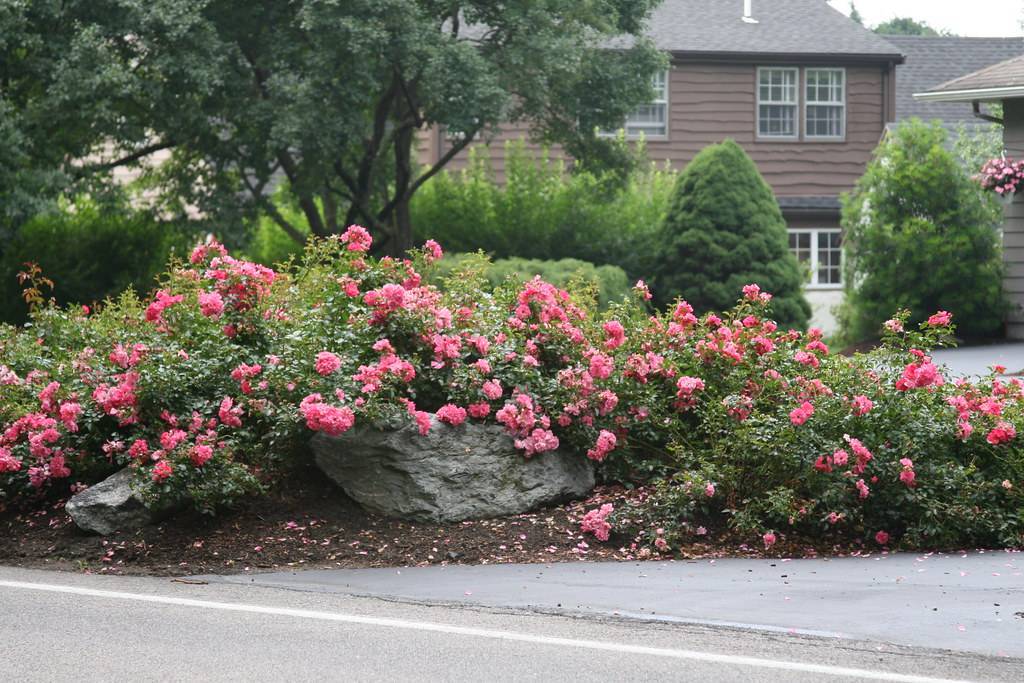 Стебли этих роз поникают, активно ветвятся, образуя плотный и невысокий ковер. Неприхотливы, способны забить сорные растения. Расстояние между кустами зависит от сорта, но оно составляет не меньше 60 см, высота у данных роз в 2 раза меньше ширины. Если это привитое растение, прививку заглубляют на 3-5 см, иначе активной поросли дичка не избежать.