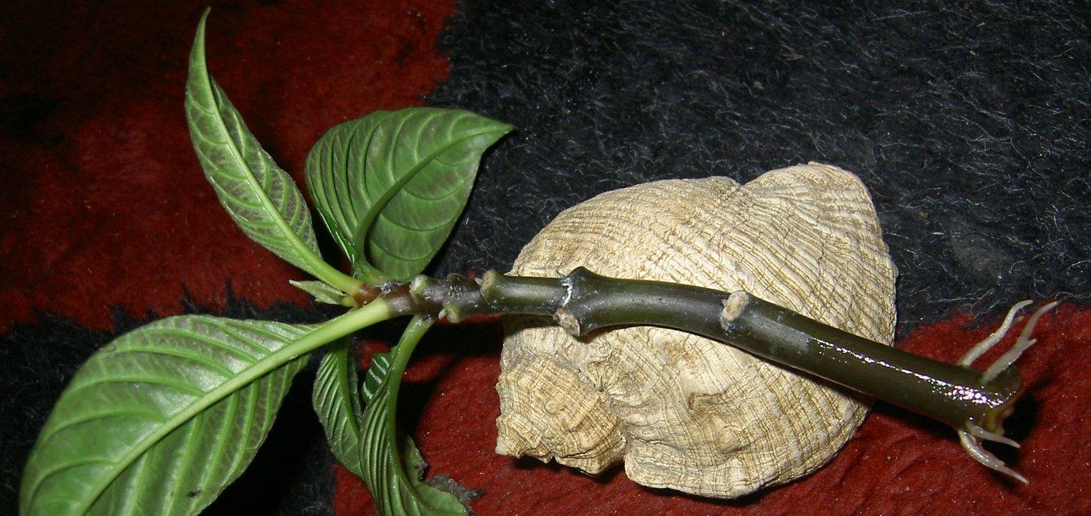 - Можно укоренять в воде, но при этом нельзя допускать соприкосновения кончиков черенков со стенками или дном сосуда с водой.