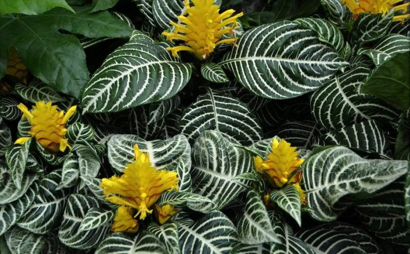 | Четырехгранная (Aphelandra tetragona) | Высота цветка достигает 1 метра, отличается крупными листьями, длина которых составляет около 30 см, овальной формы и зеленым оттенком листовой пластины. Соцветия имеют необычный ярко-алый цвет |