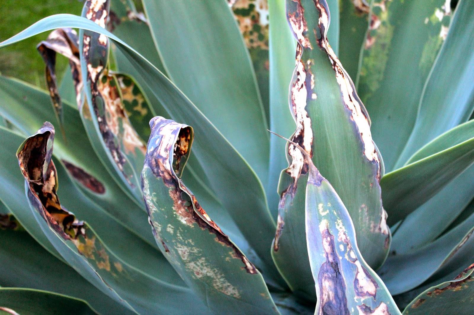 У голубой агавы низкий иммунитет к грибковым заболеваниям и вредителям. При избытке влажности цветок сражу же начинает гнить, бурыми и черными пятнами покрываются как листья, так и корневая система.