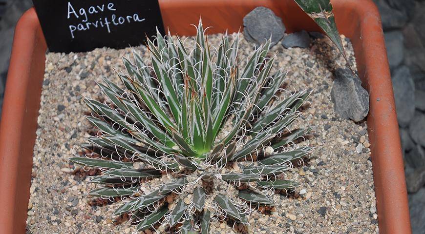 - Агава карликовая, Agava pumila – миниатюрный вид агавы, который сохраняет ювенильную форму в течение 10 лет, с розеткой всего 5–8 см диаметром.