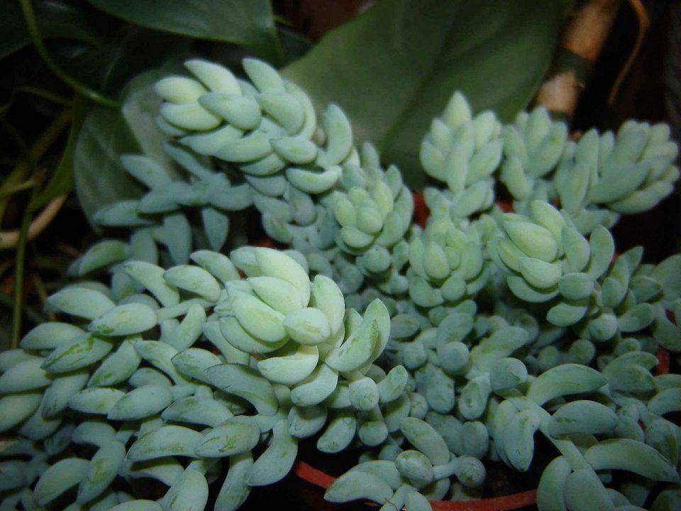 Еще это растение называют очиток Моргана, обезьяний хвост и ослиный хвост. Его длинные стебли, покрытые мясистыми листочками, действительно напоминают хвосты. Когда очиток зацветает, то на концах его «хвостов» появляются красивые розовые кисточки из мелких розовых цветов. Растение весьма неприхотливо: оно очень любит солнечный свет, но неплохо себя чувствует и в тени.