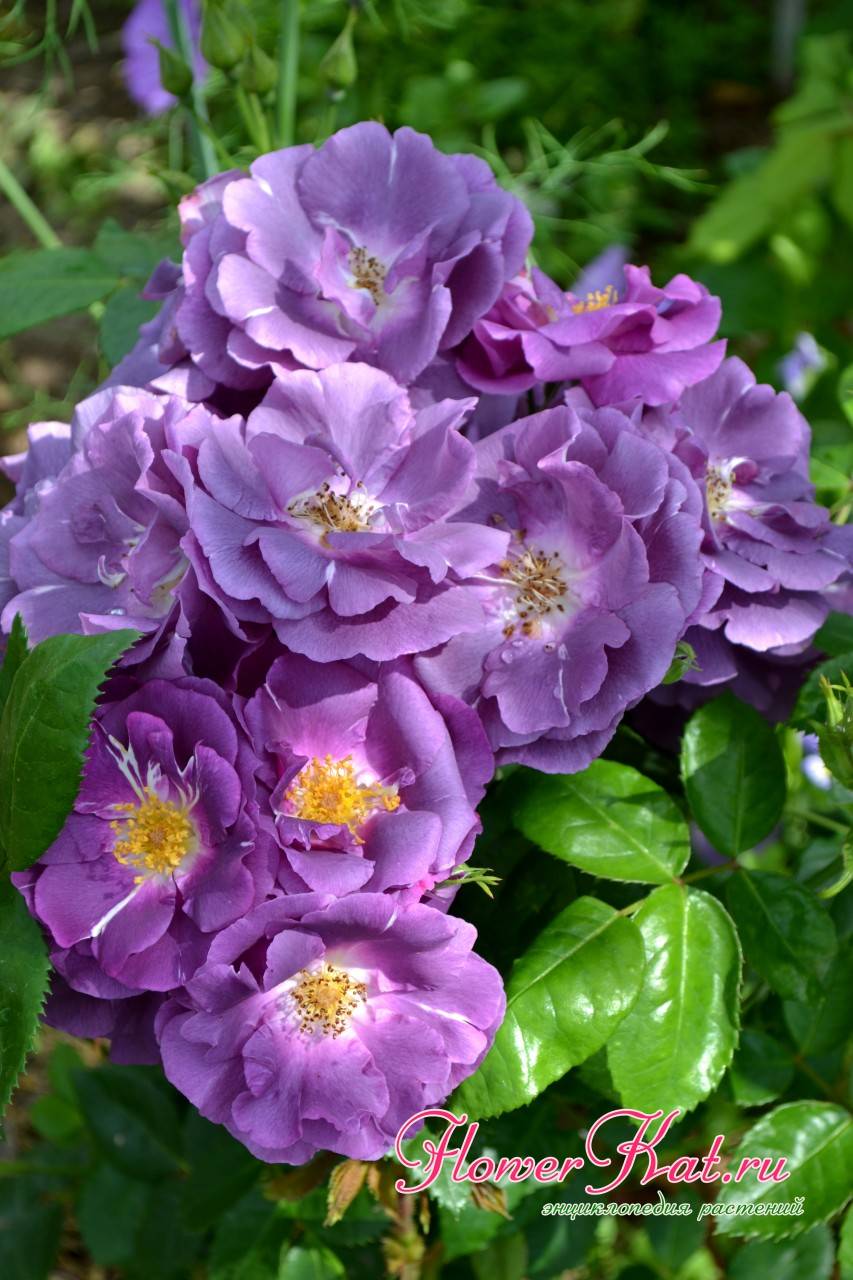Цветы «Рапсодии ин Блю» собраны в пышные кисти, обильно покрывающие куст