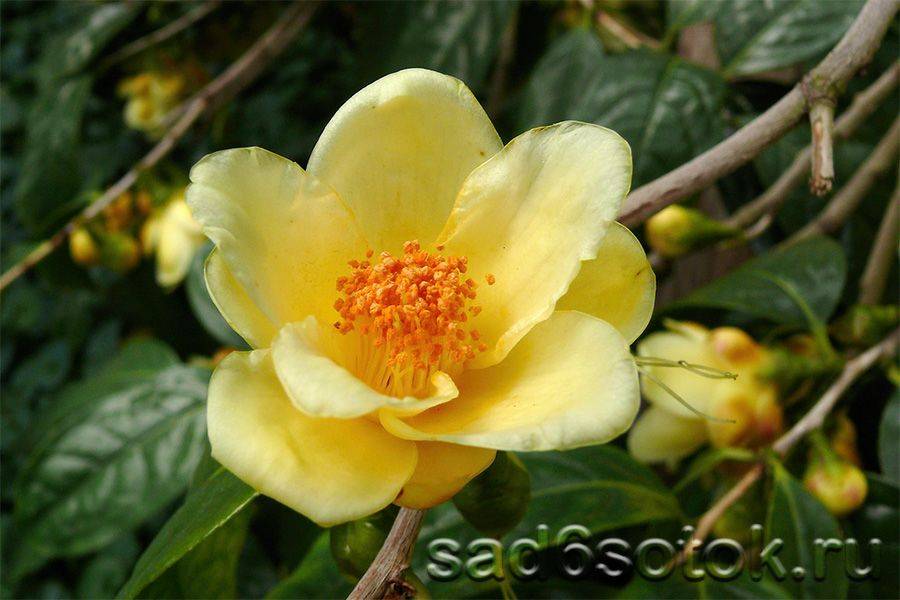 Редкий вид, находящийся на грани исчезновения. Растет во влажных лесах юго-западной части Китая. Высота кустов – 5 м. Отличается дружным цветением. Одновременно на одном растении распускается до 200 цветков желтого цвета.
