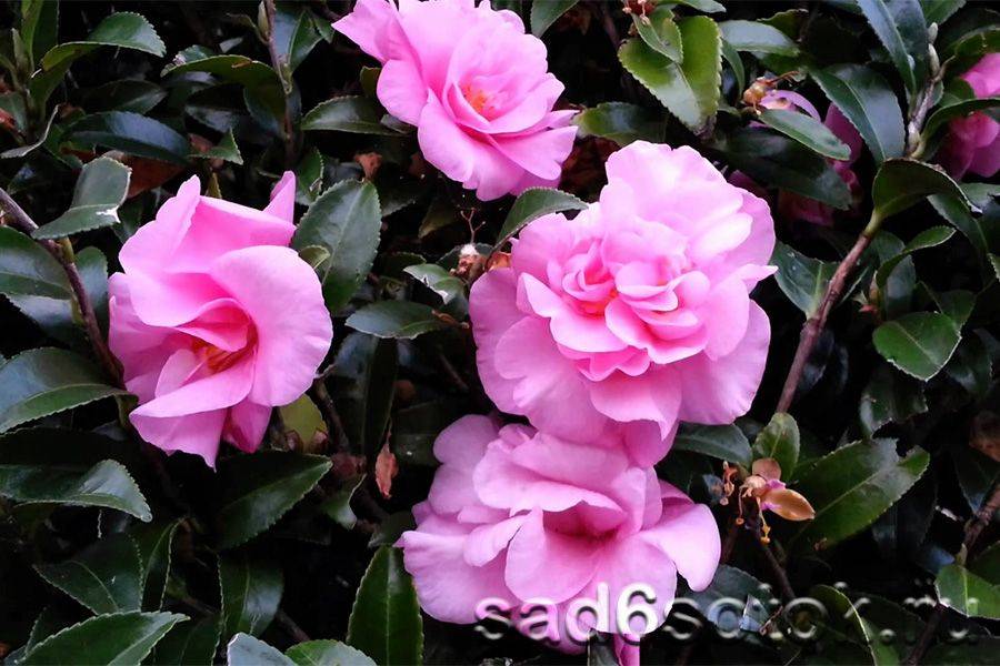 Эта камелия растет в горной и лесистой местности Китая. Кусты компактные, высотой до 4 м. Цветки розовой или белой окраски диаметром до 5 см. Камелия салуенская вместе с камелией японской являются основой для выведения новых выносливых гибридов с длительным цветением.