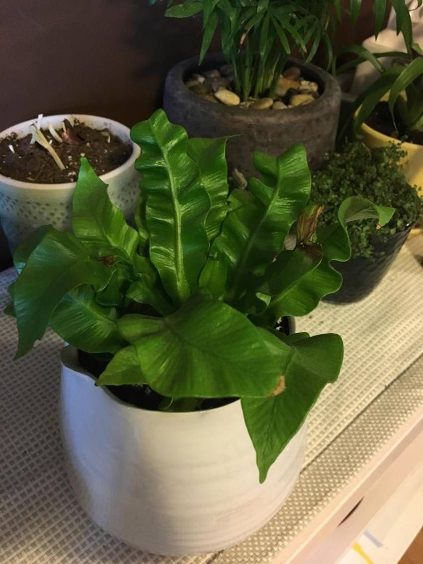 - Блеклая обесцвеченная, вытянувшаяся листва без блеска. Причина в недостатке света. Следует переставить асплениум в освещенное место без прямых солнечных лучей.