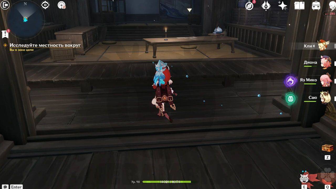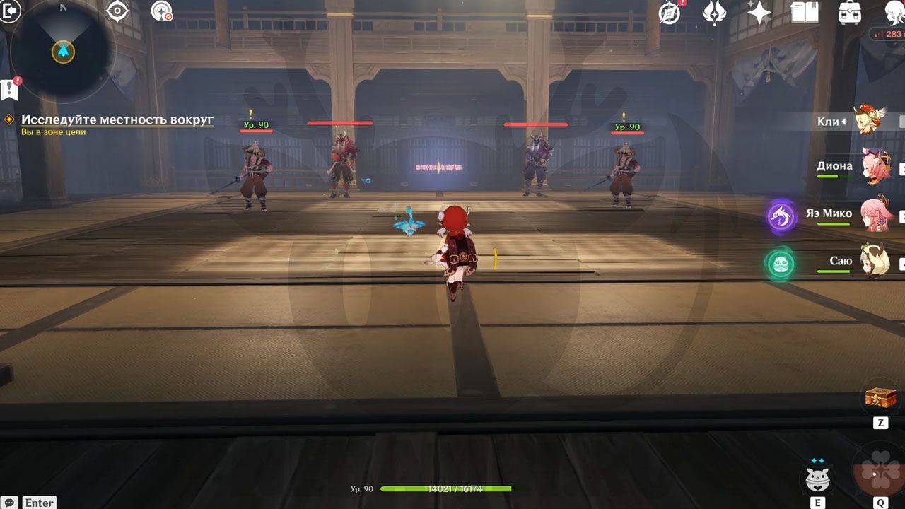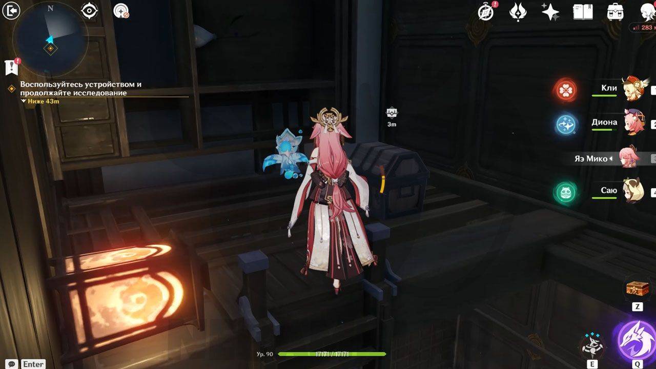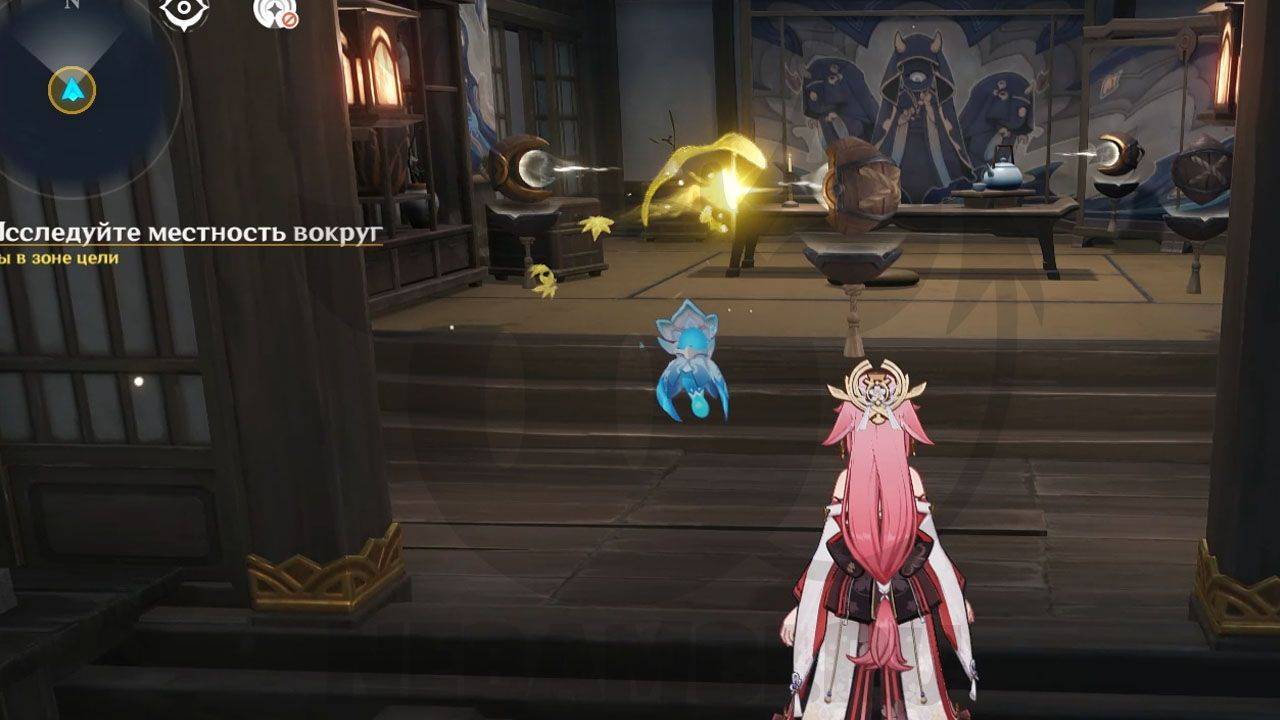 После сражения просто ударьте по треугольному механизму, чтобы открыть проход в руины. Внутри Паймон сразу заметит какого-то человека. Он представится исследователем и скажет, что его зовут Эндзё. Его главная обязанность — разбор и перевод подсказок, которые помогут вам в испытании.
