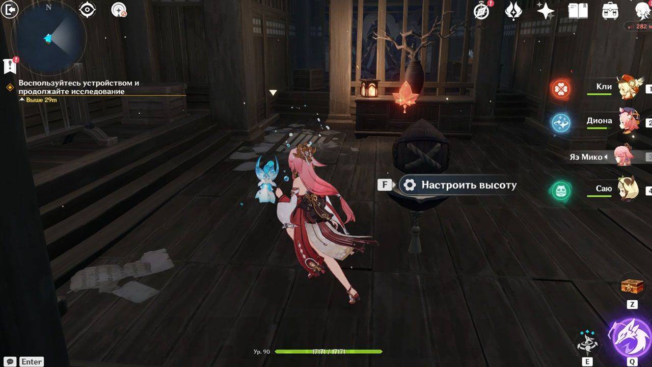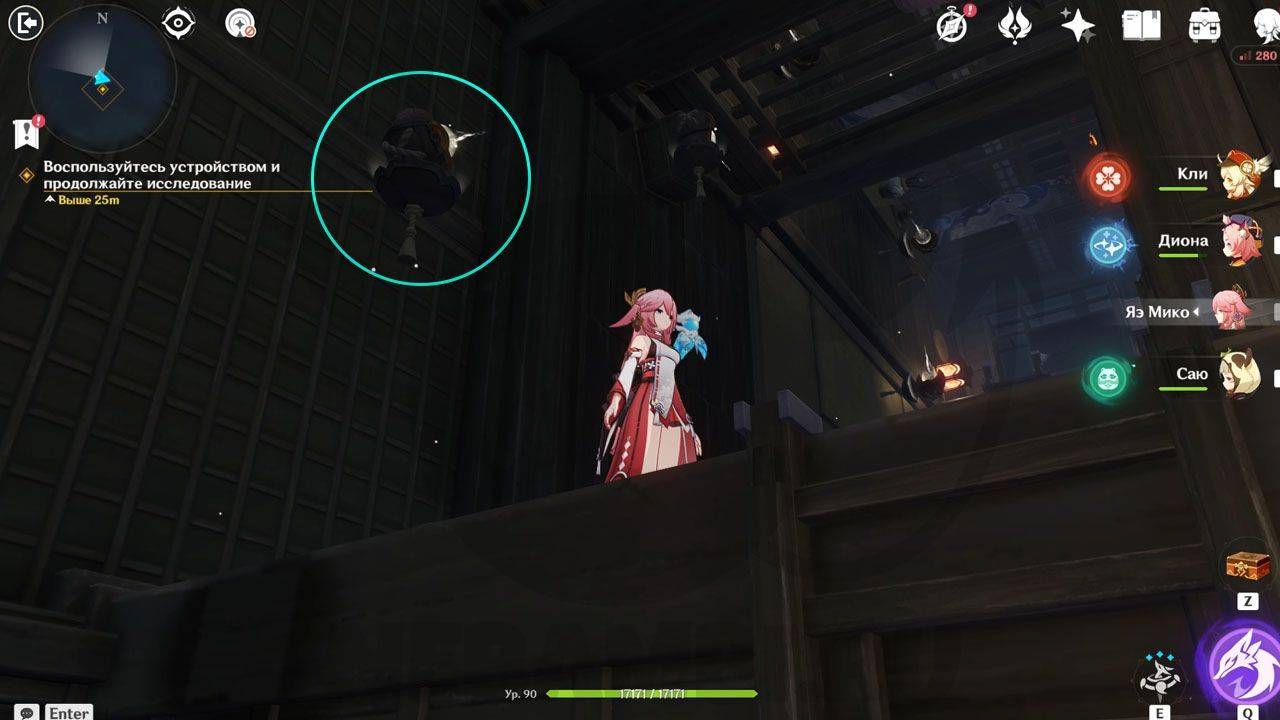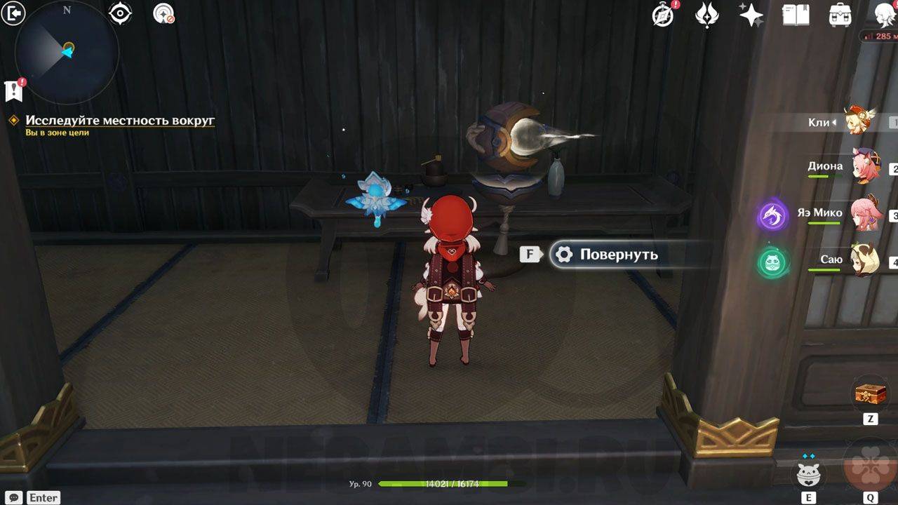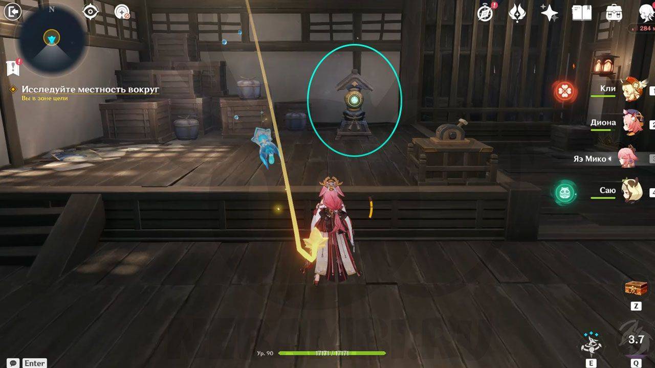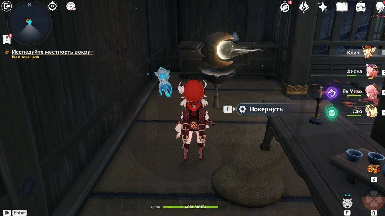 После сражения просто ударьте по треугольному механизму, чтобы открыть проход в руины. Внутри Паймон сразу заметит какого-то человека. Он представится исследователем и скажет, что его зовут Эндзё. Его главная обязанность — разбор и перевод подсказок, которые помогут вам в испытании.