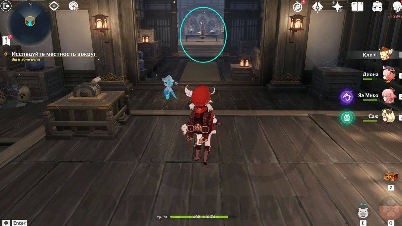 Справа вы найдете первую Омамори, подберите ее.