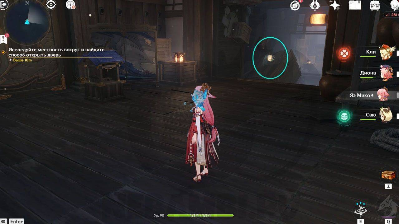 Там же находится заблокированный желтым свечением сундук.