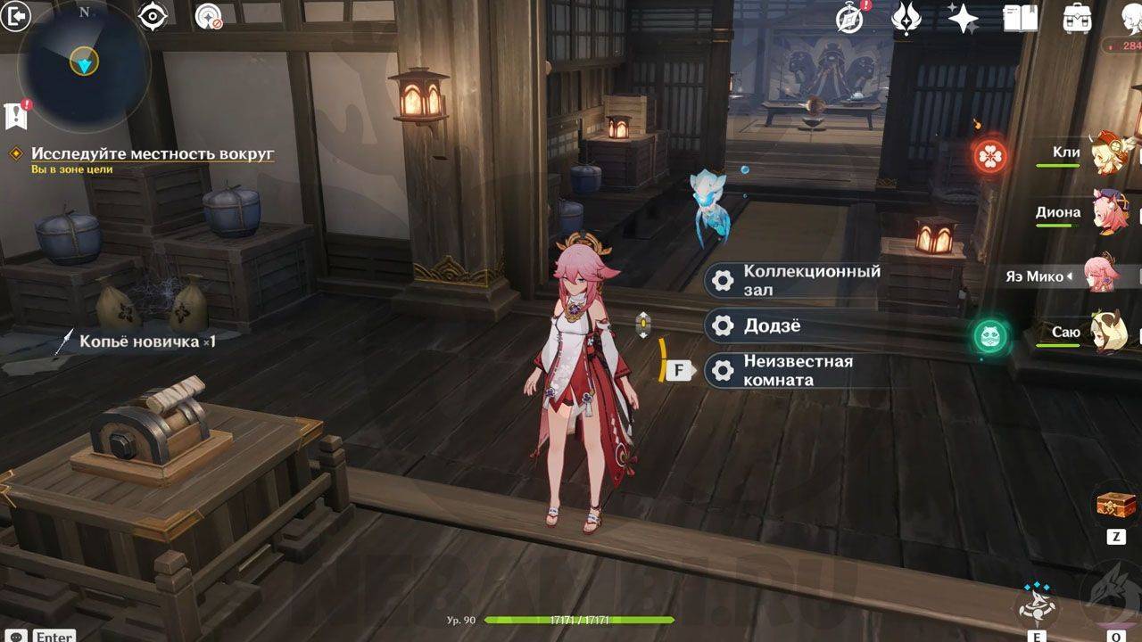 В этой комнате вы найдете Омамори и святилища, в которые их нужно поместить, чтобы пройти подземелье.