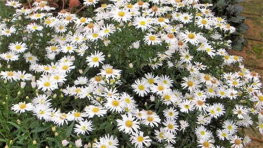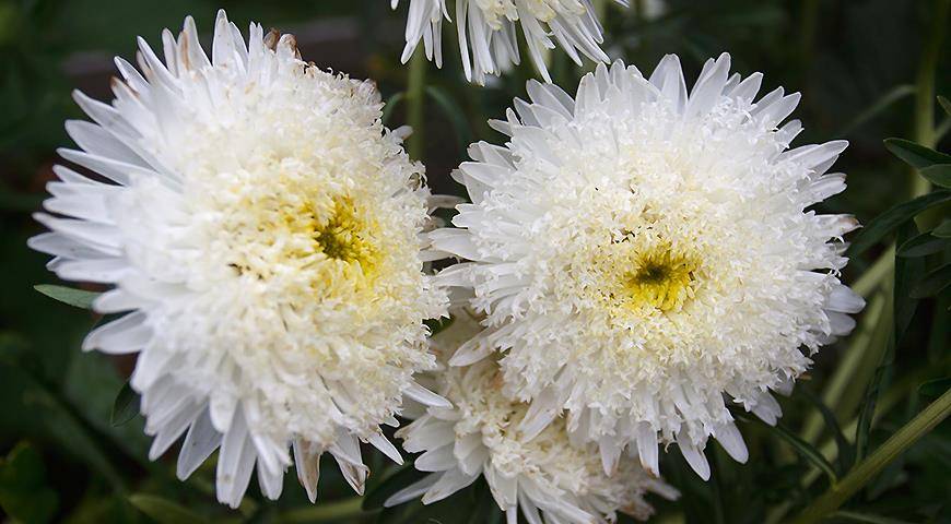 Поздняя астра раскрывает бутоны во второй половине сентября, полностью закрывающие полушаровидные кусты, что тянутся вверх до полуметра и образуют живую белоснежную изгородь. Цветки не вымерзают, когда температура по утрам опускается до -4°.