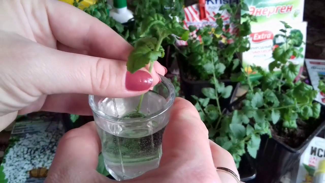 Для начала необходимо удалить нижнюю пару листочков из черенка. Затем побеги нужно поставить в воду, добавив в нее стимулирующий раствор. Спустя всего 2-3 часа ветки можно сажать в почву или же переместить в емкость с простой водой.