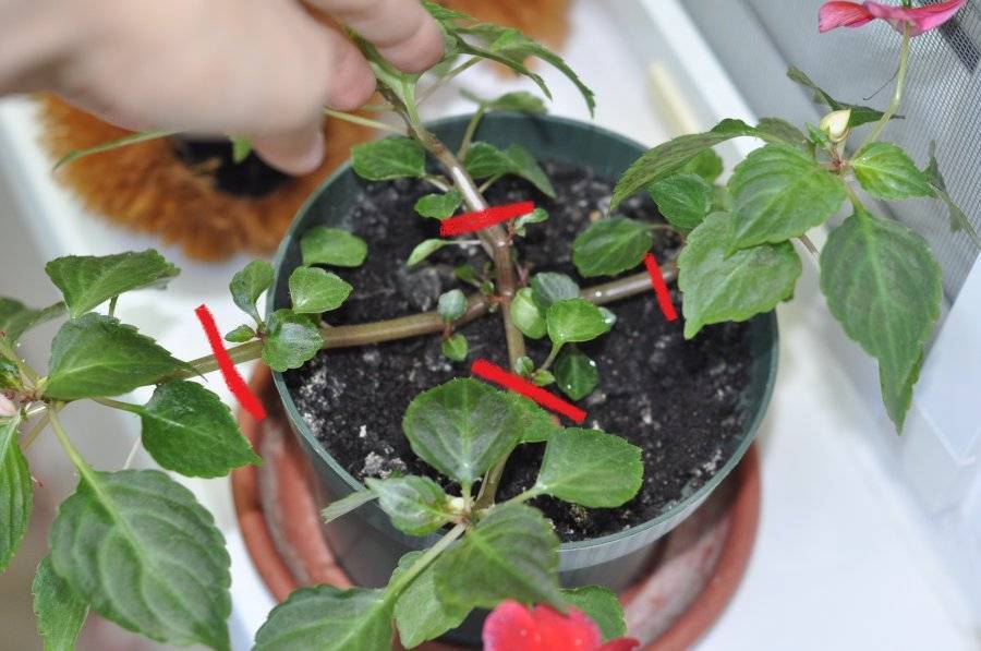 Совет. Для черенкования выбирайте верхушки бальзамина без цветов либо их удалите. Черенок должен быть 8-10 см, с 2-3 междоузлиями. Нижние листы удаляют.