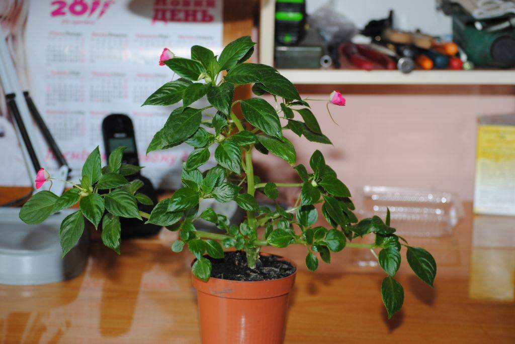 Если растение начало вытягиваться вверх, а нижние листья с него опадают, это явная подсказка, что горшок располагается в неправильном месте. Цветов в этом случае удастся дождаться только на самой макушке кустика. Необходимо подобрать для бальзамина более комфортное место и понаблюдать за его поведением.