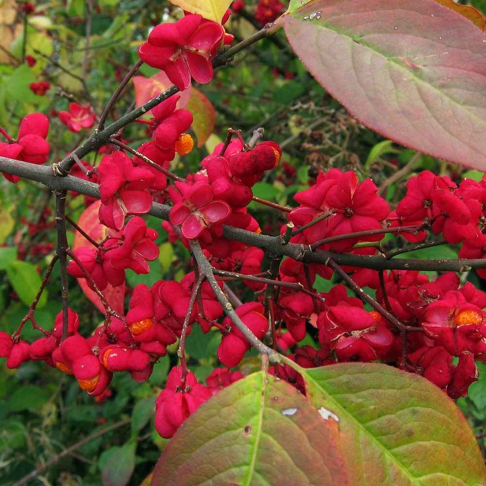 Бересклет европейский имеет множество сортов, отличающихся цветом плодов, листьев, осенней окраской, высотой растения и т.д. Среди них: