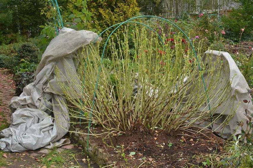 снимаем утеплитель с гортензии