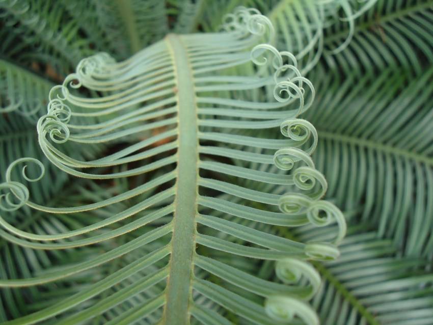 Но если посмотреть на то, как зарождаются, выпускаются и открываются листья цикаса, создаётся полное впечатление, что мы имеем дело с папоротником.