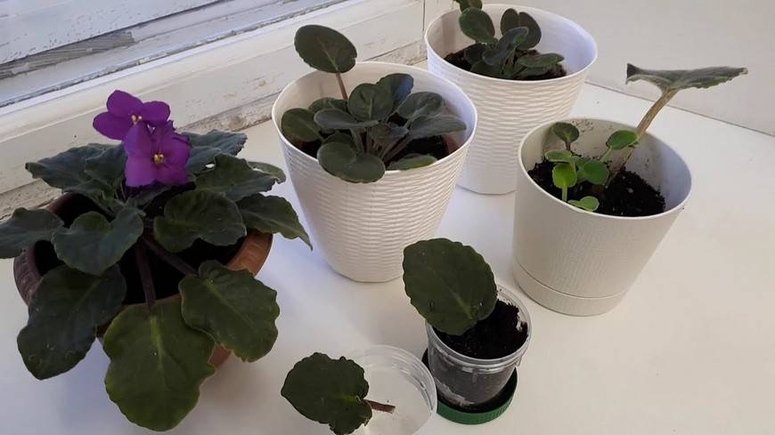 При пересадке фиалок следует подбирать подходящие по размеру горшки, учитывая, что растения предпочитают невысокие емкости.