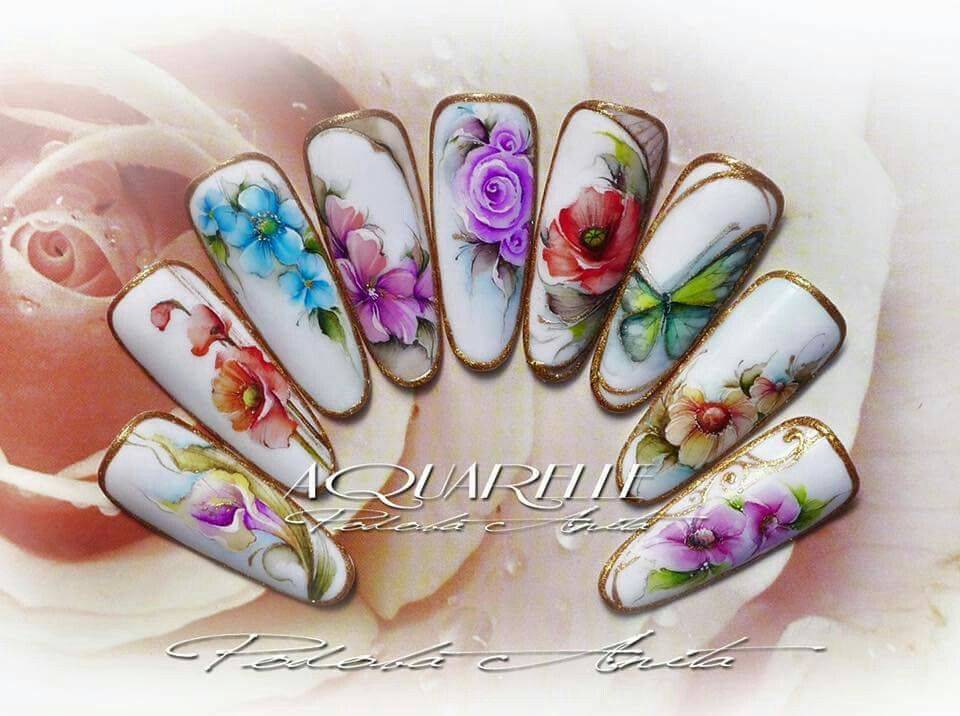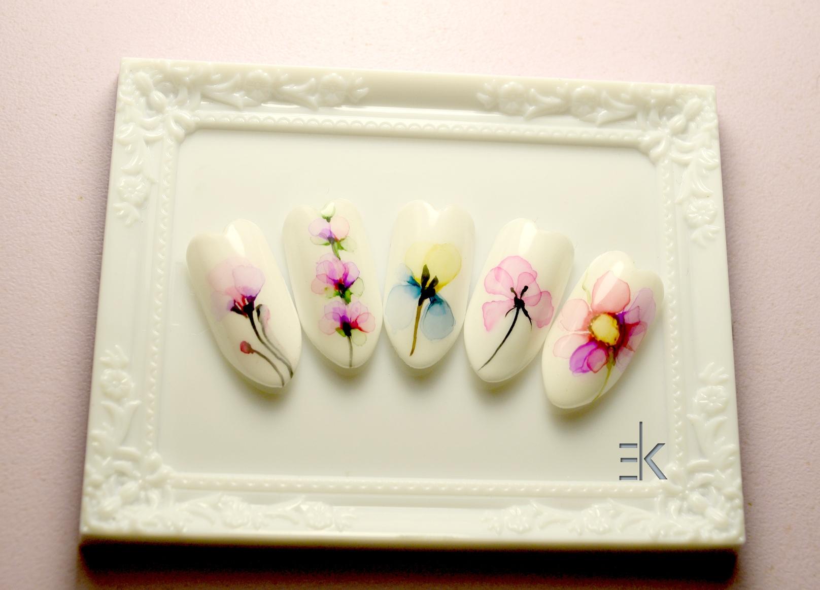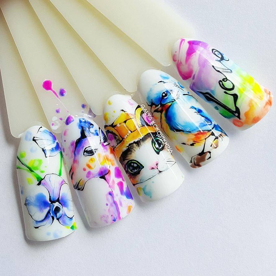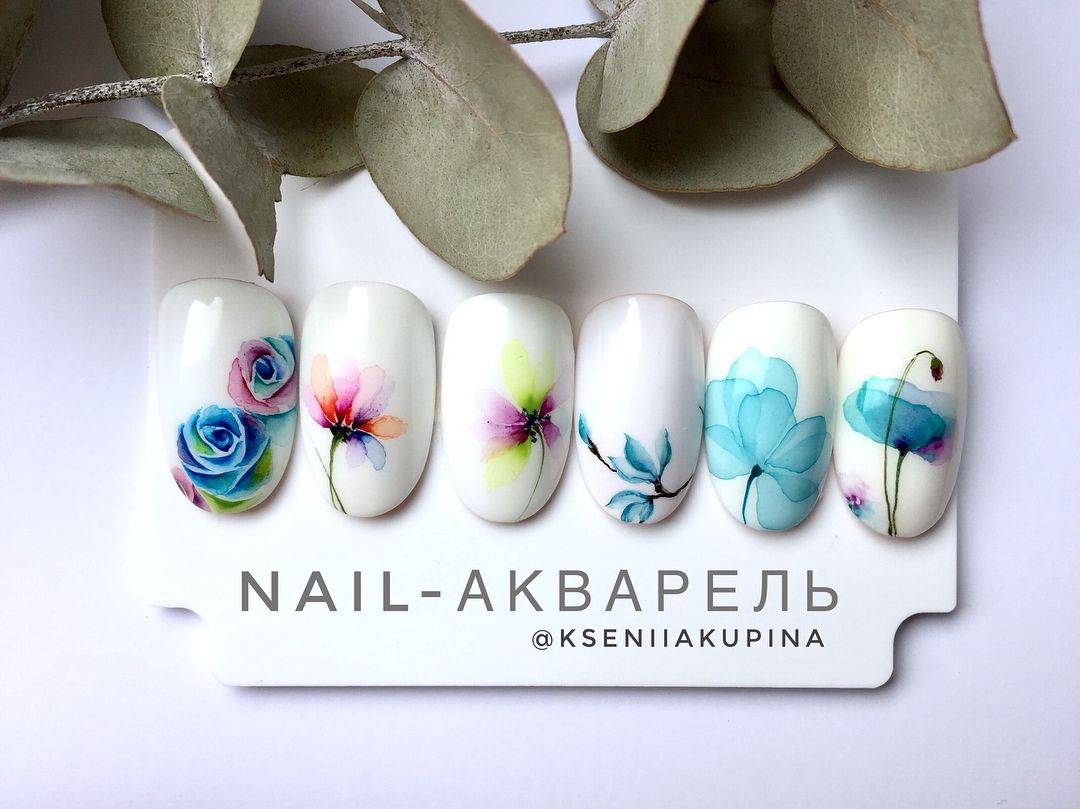 Маникюр с рисунком акварелью: как правильно наносить нужный орнамент?