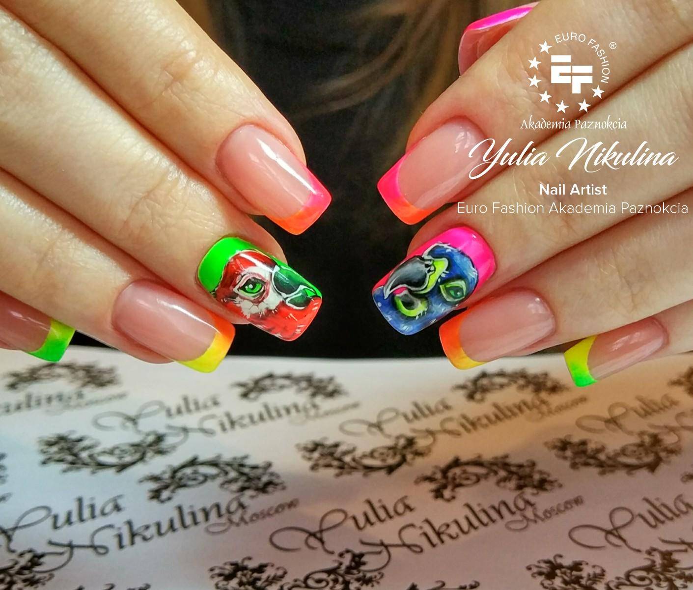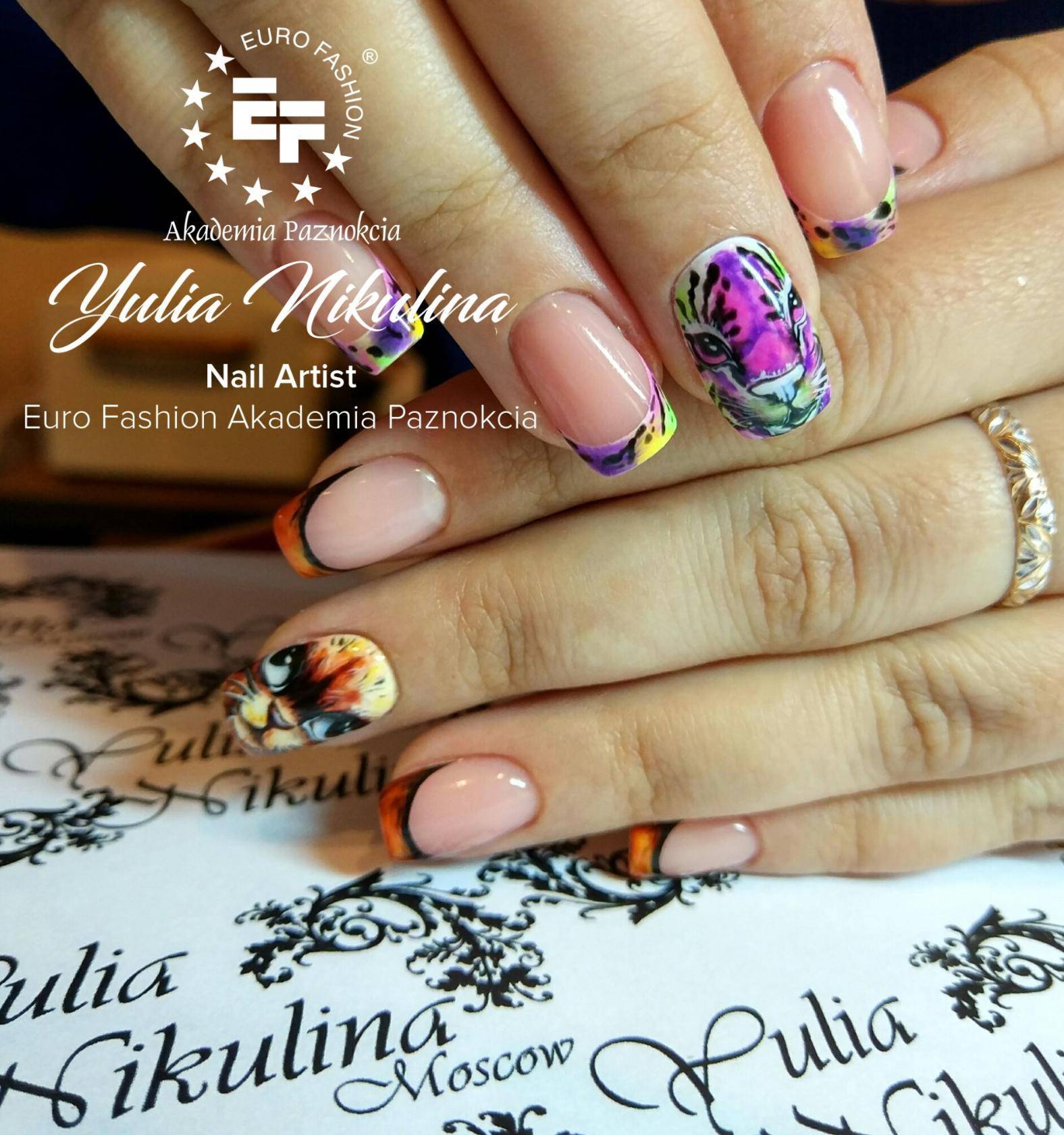В первую очередь стоит помнить то, чтобы превратить темный оттенок в несколько тонов светлее, стоит его разбавить с белой акварелью. Таким образом, все элементы орнамента будут иметь свою плавность в переходах. Но не стоит сильно увлекаться, иначе рисунок станет слишком белесым и превратится в высветленный пейзаж. При нанесении нужного тона можно работать с соединением цветов сразу на ногтевой пластине. Для этого отличным помощником станет кисточка. Именно она придаст расплывчивость и поможет получить нужный результат. Толщина кисточек может меняться. Это зависит от масштабов картинки. Если рисунок должен заполнять практически весь ноготок, то стоит отдать должное более утолщенным кистям. По окончанию работы над орнаментом не стоит подчеркивать все контуры и элементы орнамента. Так ваше произведение искусства приобретёт полупрозрачность и легкость. Для достижения акварельного эффекта не стоит делать слишком толстый контур и делать обводку всего орнамента. Так же стоит выбирать качественные и профессиональные кисточки, предназначенные именно для работы с акварельными красками для маникюра. При создании рисунка не у всех мастеров получается нанести ровные линии. Поэтому необходимо учесть главный совет – кисть необходимо держать перпендикулярно ногтевой пластине.