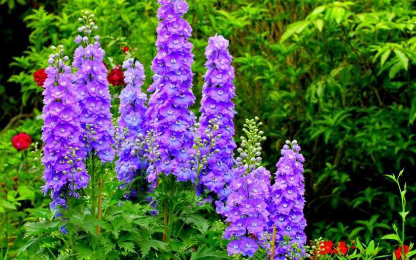 Как высаживать и ухаживать за дельфиниумом на даче? Шпорник высаживают в общем цветнике. Из-за того, что он имеет высокое и пышное цветение, дельфиниум размещают на заднем плане.