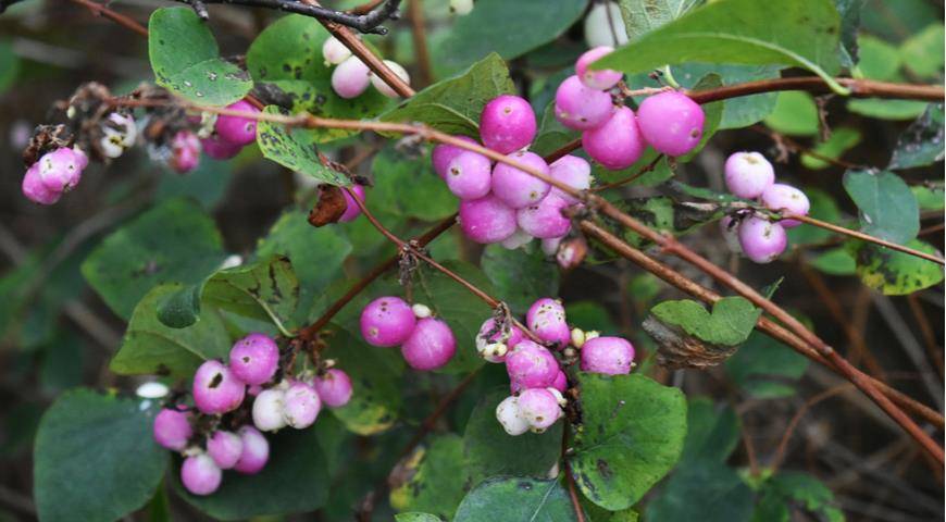При покупке сорта снежноягодника обратите внимание на зимостойкость, есть сорта с зимостойкостью 5 и 6 зоны. Повнимательней присмотритесь к снежноягоднику сорта Mother of Pearl (USDA 3), высотой до 1,7 м, в диаметре до 2 м или Magic Barry (USDA 4), высотой до 2 метров с шаровидной ажурной кроной