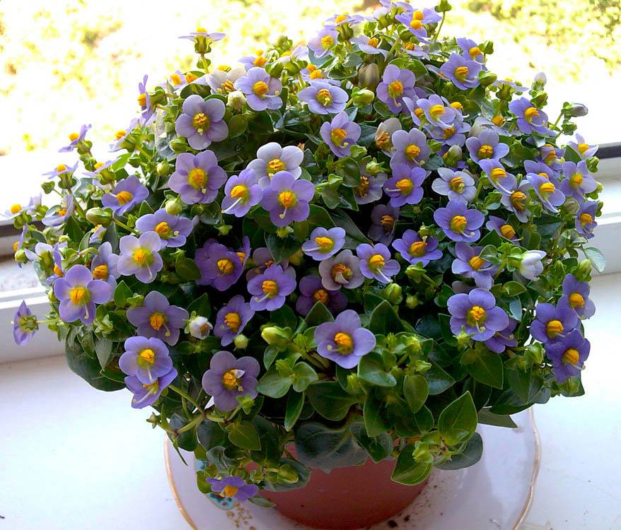 Этот сорт группа культурных растений, полученная в результате селекции в рамках низшего из известных ботанических таксонов и обладающая определённым набором характеристик (полезных или декоративных), который пользуется большой популярностью в культуре. Его используют для горшечного выращивания. Растение образует густую крону почти идеальной шарообразной формы может означать: Форма предмета — взаимное расположение границ (контуров) предмета, объекта, а также взаимное расположение точек линии. Зеленая плотная листва является превосходным фоном для маленьких цветочков синего окраса свойство предметов отражать, переизлучать и рассеивать свет, определяющее их визуальное восприятие в определённых условиях — ощущаемый человеком цвет, которые украшают насыщенно-желтые сердцевинки.