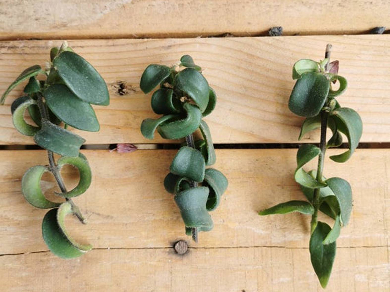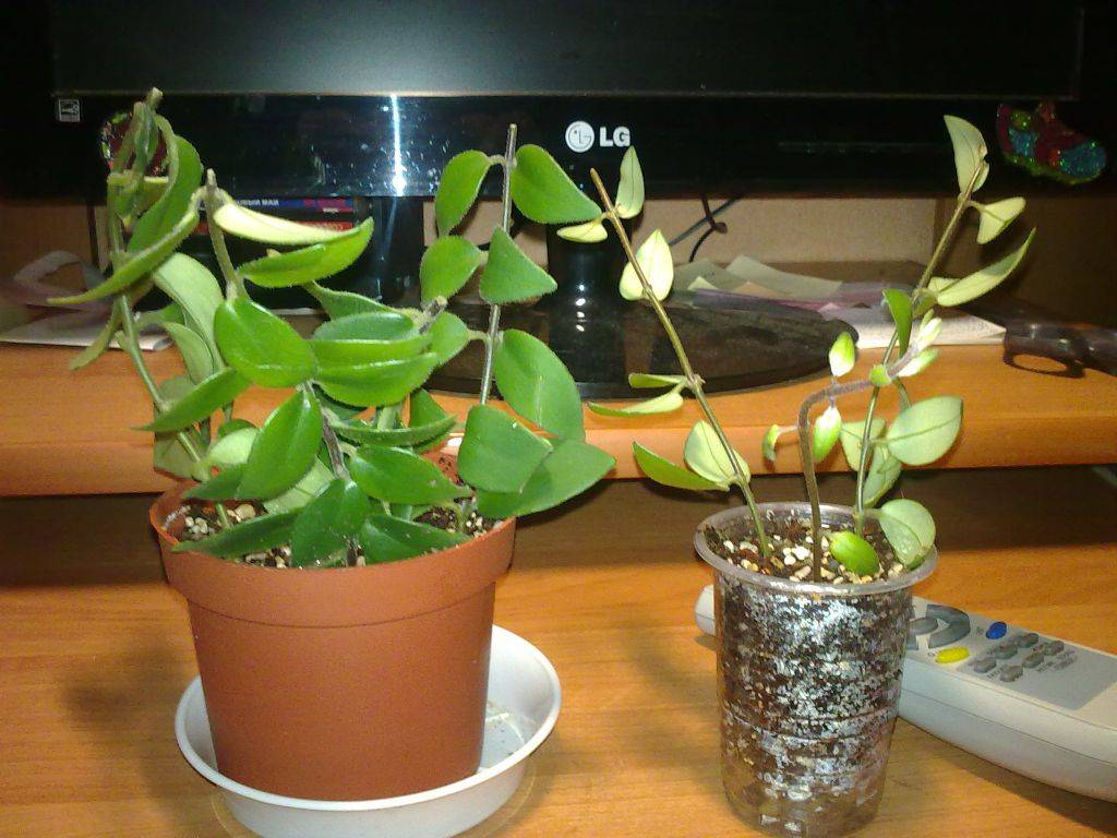 Длина побегов варьируется от 30 см до 1,5 метров. Листья насыщенного зеленого цвета располагаются попарно. Их форма овальная, но с вытянутым заостренным концом. Толстые листья привыкли запасать воду, так как влага в тропических лесах доступна только в период дождей.