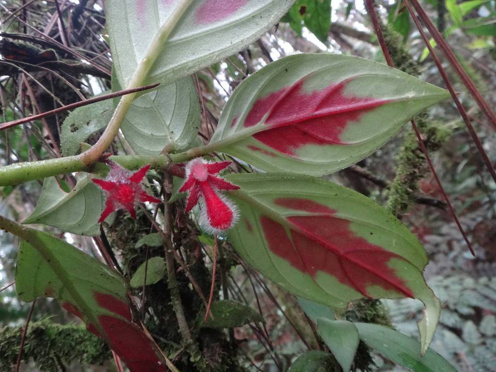 Такой кустарник встречается в лесах Перу, Бразилии и на Амазонке. Он имеет мясистые побеги, покрытые коричневатым пушком и большим количеством крупных междоузлий. На побегах формируется листья, имеющие широкую овальную конфигурацию, которые крепятся к недлинным черешкам длиной 6-7 см. Лицевая сторона листовой пластины окрашена в тёмно-зелёный окрас и украшает светлыми полосами, тыльная сторона имеет фиолетовый оттенок и легкую бархатистость. Большое количество мелких цветков формируются в соцветия, которые вырастают на длинных цветоносах и окрашенные в фиолетовый окрас. Отличительной чертой данного вида является наличие контрастных продольных прожилок по всей поверхности листьев. Растение часто используется как украшение террариумов и в цветочных композициях в флорариума.