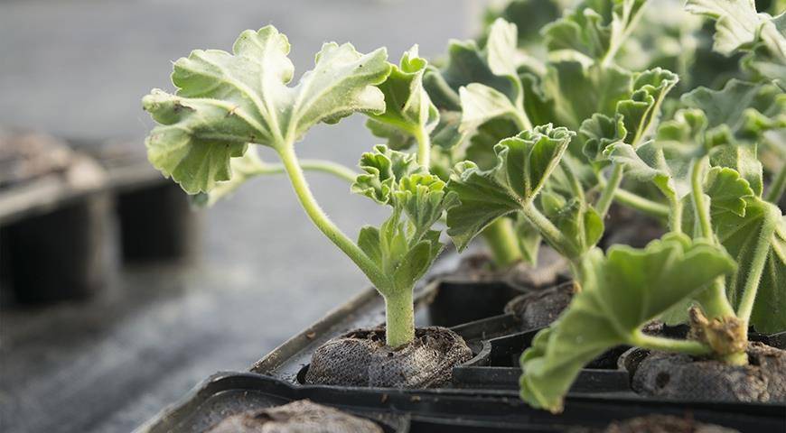 Черенки пеларгонии очень удобно проращивать в торфяных таблетках.