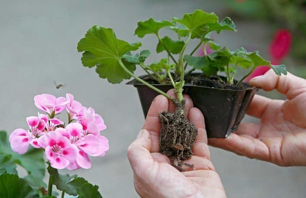 Важно! Последующий уход за рассаженной пеларгонией заключается в регулярном поливе и подкормке. Подкармливать разделенную корнями герань можно через 30 дней после посадки
