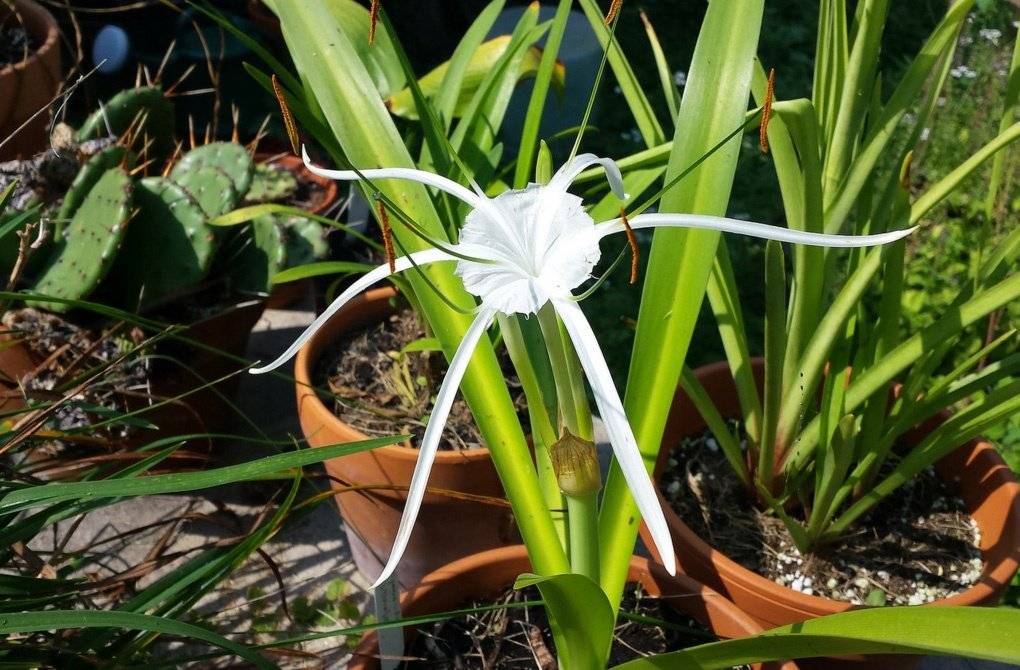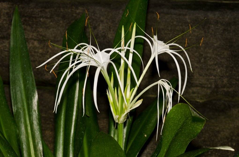 Гименокаллис прибрежный. Второе название – «лилия паук» получил благодаря весеннему цветению. В природе обитает у мангровых зарослей и болот тропической Америки.
