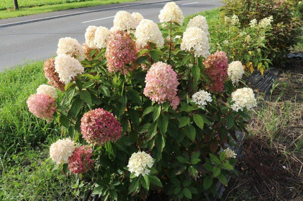 Гортензия метельчатая Ванилла Фрейз – в высоту кустарник достигает полтора метра, но это не отнимает от растения заслуженную популярность. Опытные цветоводы пребывают в восхищении от плотности размеров пирамидальных соцветий. Кроме того, соцветия всегда приобретают два цвета – верх выкрашен белым оттенком, а низ приобретает нежно-розовый цвет. В результате внешний вид больше напоминает рожок мороженого.