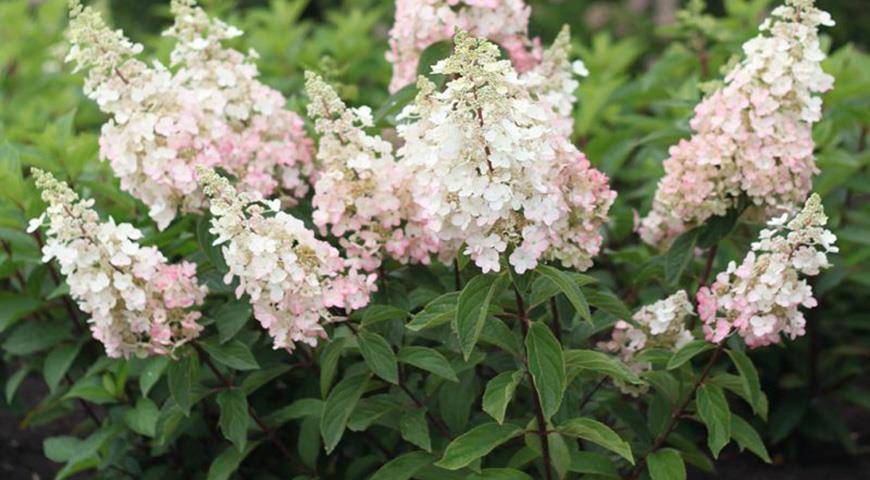 Куст высотой 2 м. Цветки белые, к осени слегка розовеют. Собраны в конусовидные соцветия. Великолепно подходят для срезки. Цветение в июле-сентябре. Листья темно-зеленые.