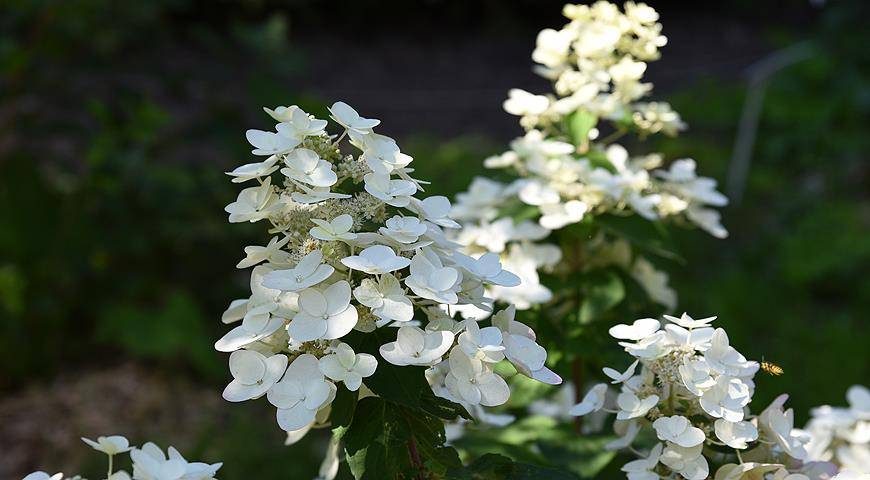 Классическая гортензия с небольшими (20 см) рыхлыми белыми соцветиями. Куст высотой 1,5–1,8 м.