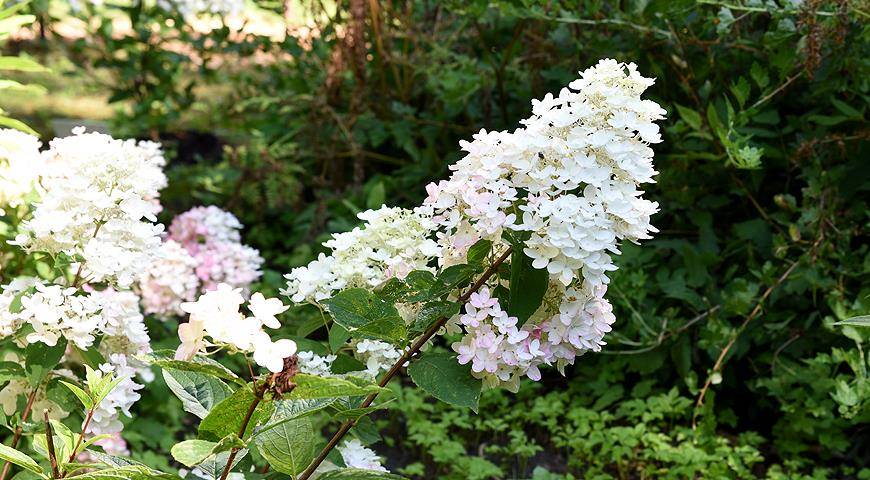 Неприхотливый сорт с белыми соцветиями, которые к осени приобретают розовато-сиреневатый оттенок. Высотой 2 м.