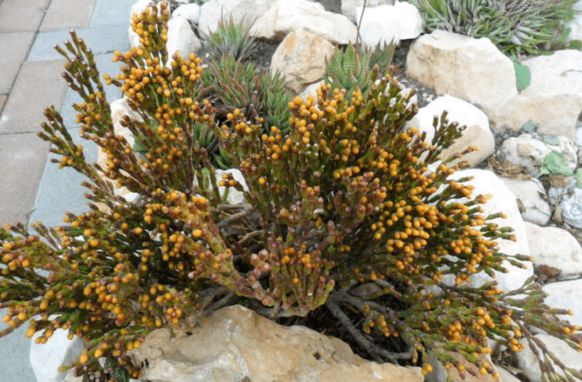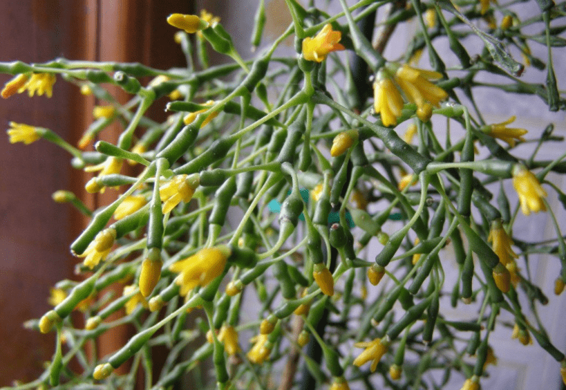 Hatiora epiphylloides выпускает красивые соцветия желтого тона. Образуются бутоны на кончиках побегов.