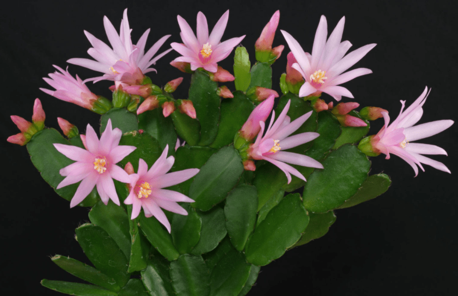 Вся красота суккулента раскрывается в период цветения. Бутоны образуются на верхушках концевых сегментов. Поэтому, чем больше ветвлений на кусте, тем ярче хатиора выглядит в цвету.