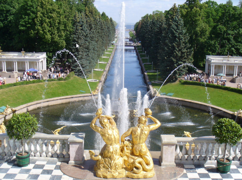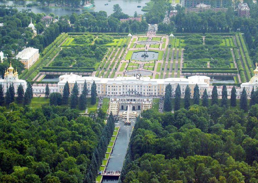 Большое влияние на развитие ландшафтной архитектуры в России оказала Франция. В начале 18 века был построен Петергоф. Было удачно выбрано место близ моря и с выходом на побережье. Резервуары были спроектированы так, что петергофские фонтаны работали и работают круглосуточно в течении теплого сезона. Кроме дворца там построены малые дворцы, чайные домики и банный комплекс.
