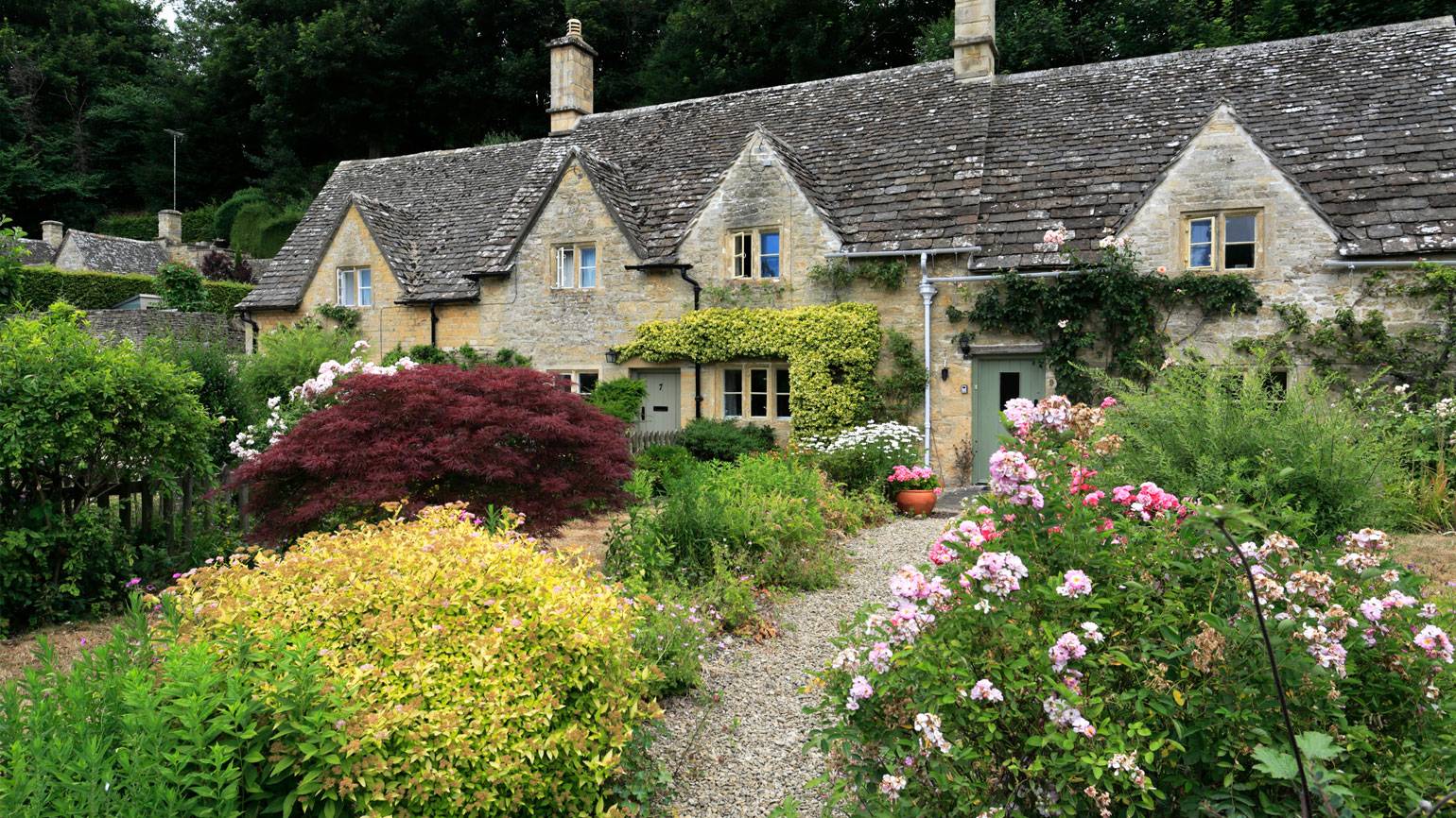 Ключевые элементы. В озеленении задействуют местные растения, экзотические будут смотреться неорганично. В большинстве случаев это многолетники, дикорастущие цветы ― мак, лаванда, ромашка, клевер, папоротник. Растения не оформляют в классические клумбы, они растут максимально естественно, газоны также не стригут.