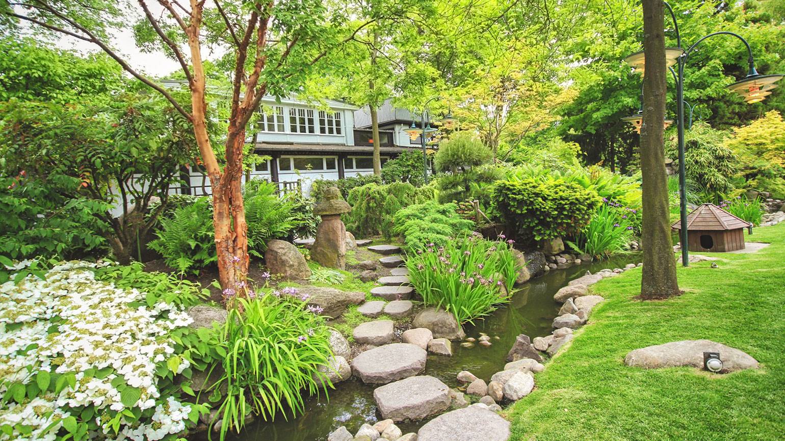 Вместо искусственных ограждений создают живые изгороди или отделяют пространства с помощью деревьев ― также свойственных региону. Прогулочный маршрут прокладывают извилистые дорожки ― выложенные камнем, гравием или другими природными материалами. Дополнить ландшафт можно водоёмом ― ручьём или прудом.