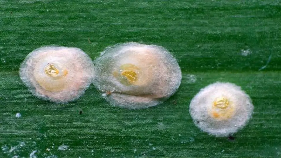 Важно. После затвердения мягких защитных покровов вредитель обездвиживается.. Щитовки, живущие на комнатных растениях, обладают овальным или круглым тельцем белого или бледно-бежевого цвета, размеры которого не превышают 2 мм