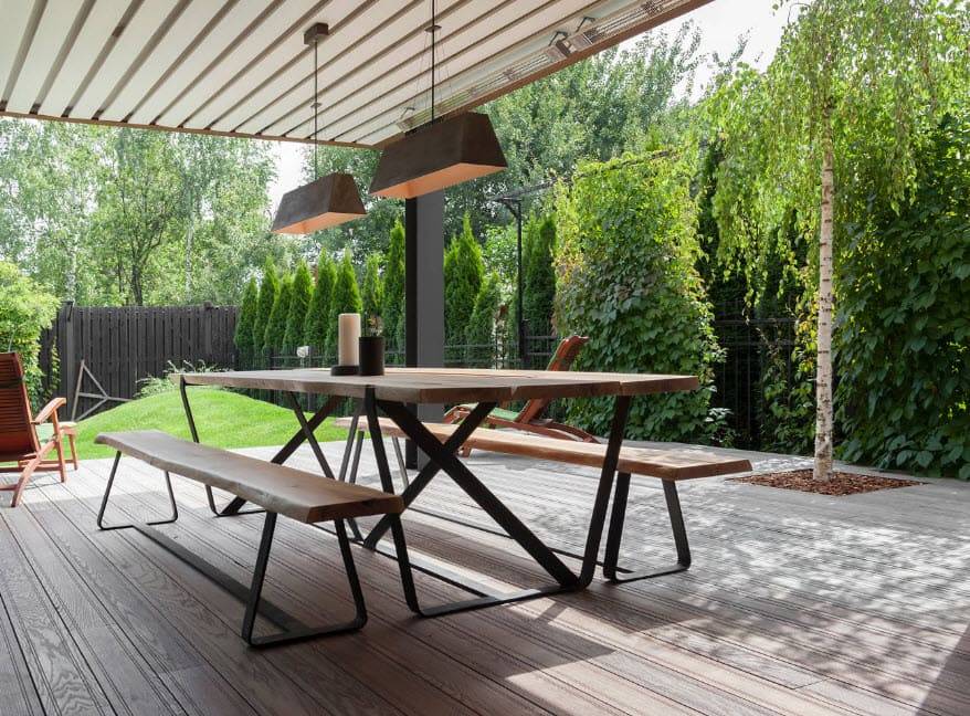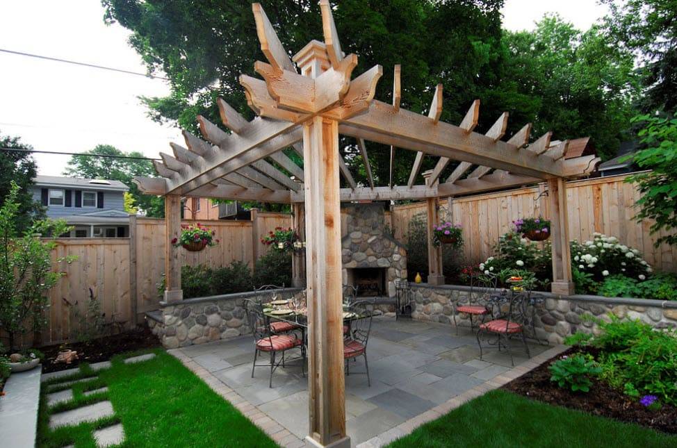 - Защита от дождя. Не для каждой зоны отдыха на даче это актуально, но если ваш климат предполагает частые осадки — задумайтесь о закрытой беседке взамен патио или перголы без крыши.