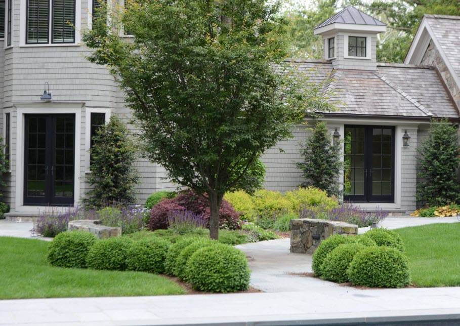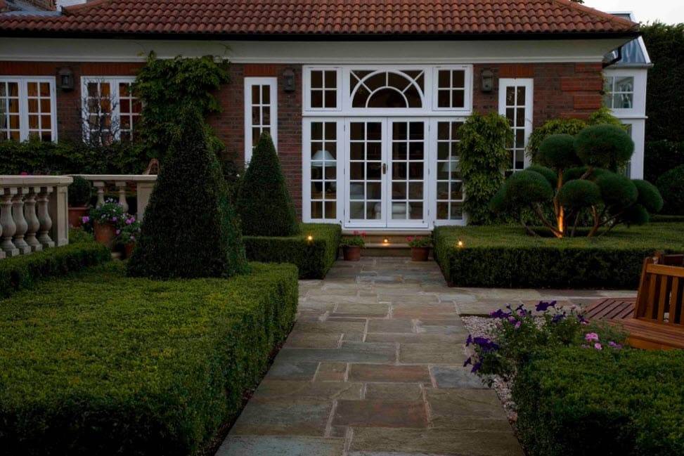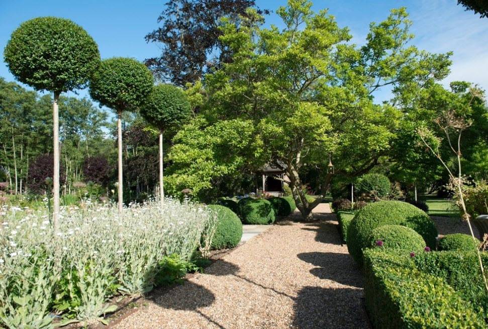 Классика в ландшафтном дизайне – это торжество строгого порядка, абсолютной симметрии и выраженных центров. Симметричные лабиринты из зеленой изгороди вокруг фонтана четко напротив входа – именно отсюда. Дорожки – прямолинейные и структурированные, все цветники и клумбы – строгой геометрической формы. Для посадки выбирай кустарники и деревья с компактной кроной, которую можно стричь и формировать.