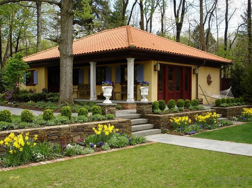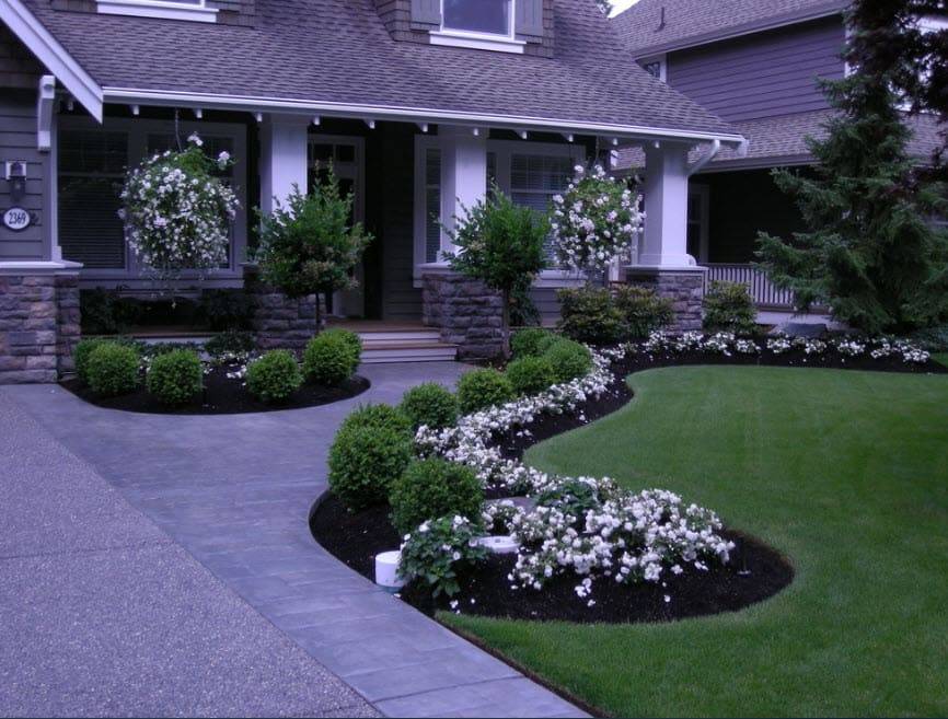 Если земельный участок достаточно большой, то на нем можно свободно разместить несколько интересных растительных композиций, и по мере возможности дополнить их красивыми дорожками, лавочками, беседками и зонами барбекю. Красивый палисадник может преобразить саму постройку и все пространство перед домом.