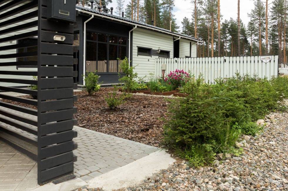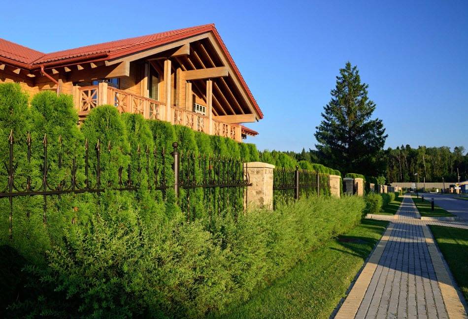 Фасад – это территория, отделяющая участок от дороги и соседей. Фасадное благоустройство можно выполнить в виде забора, либо «живой» изгороди, которая защитит вас от «посторонних» глаз.