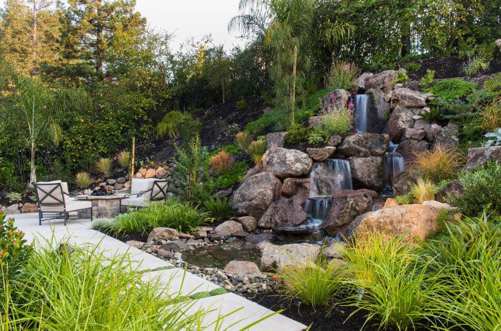 А в глубинной части участка можно разместить искусственный фонтан либо водоем.