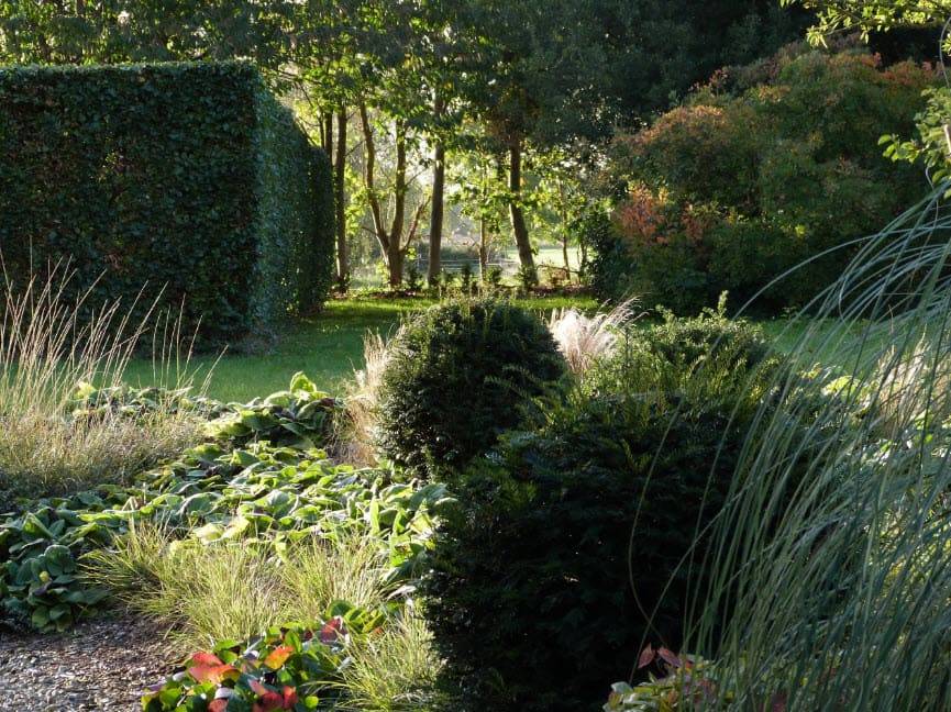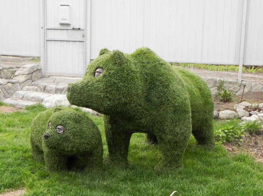 Этот прием позволит придать участку опрятность и привлекательность, если живую изгородь и кусты аккуратно подстричь. Нежелательно использовать хвойные растения, их стричь не следует. Кустарники и небольшие деревья с пышной кроной можно оформить в виде ворот, фигур животных. Создать обрамление садовой дорожки, ведущей к выходу.